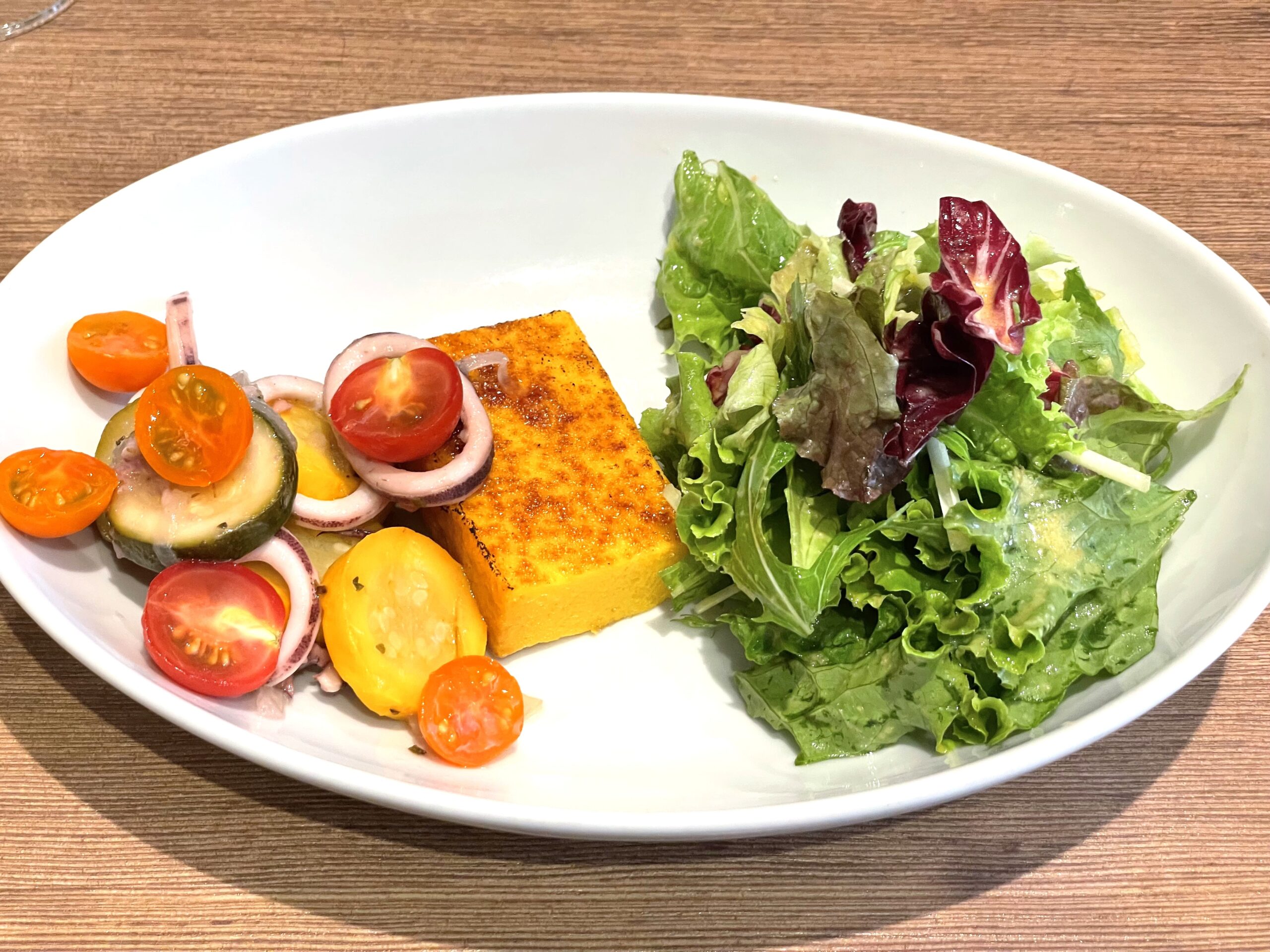 【シェフのきまぐれサラダ⑤】南瓜のプリン ズッキーニとスルメイカのマリネ。