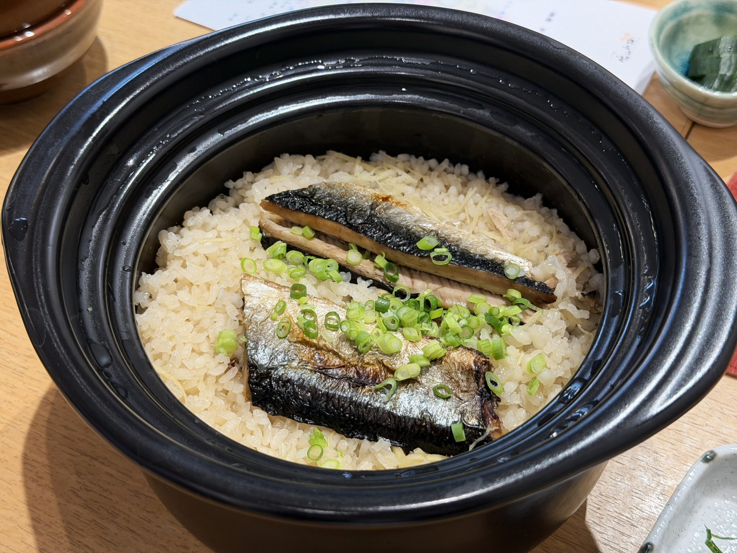 【食事①】窯炊きの秋刀魚御飯。