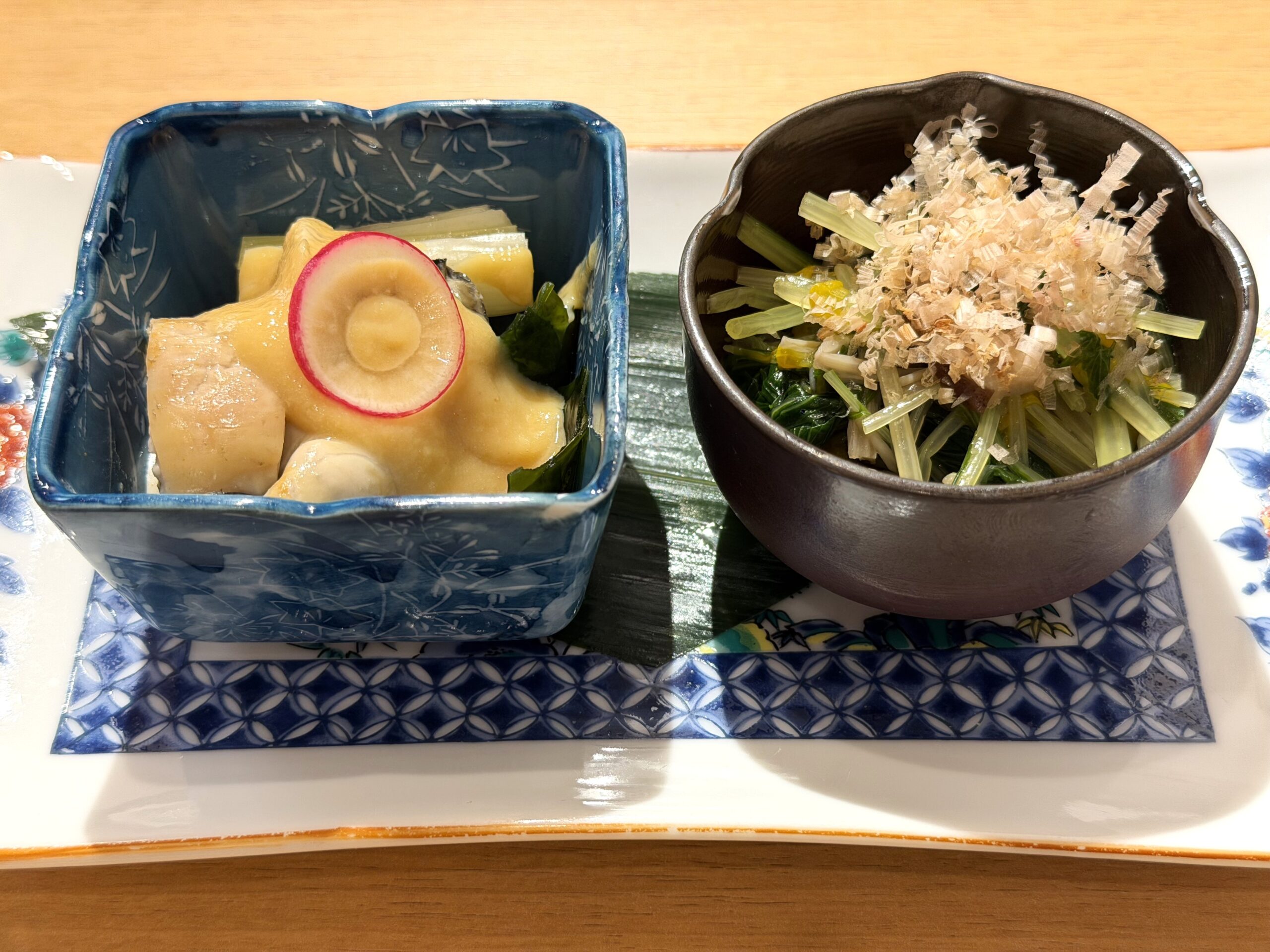 【前菜】牡蠣の酢味噌和え 春菊のお浸し
