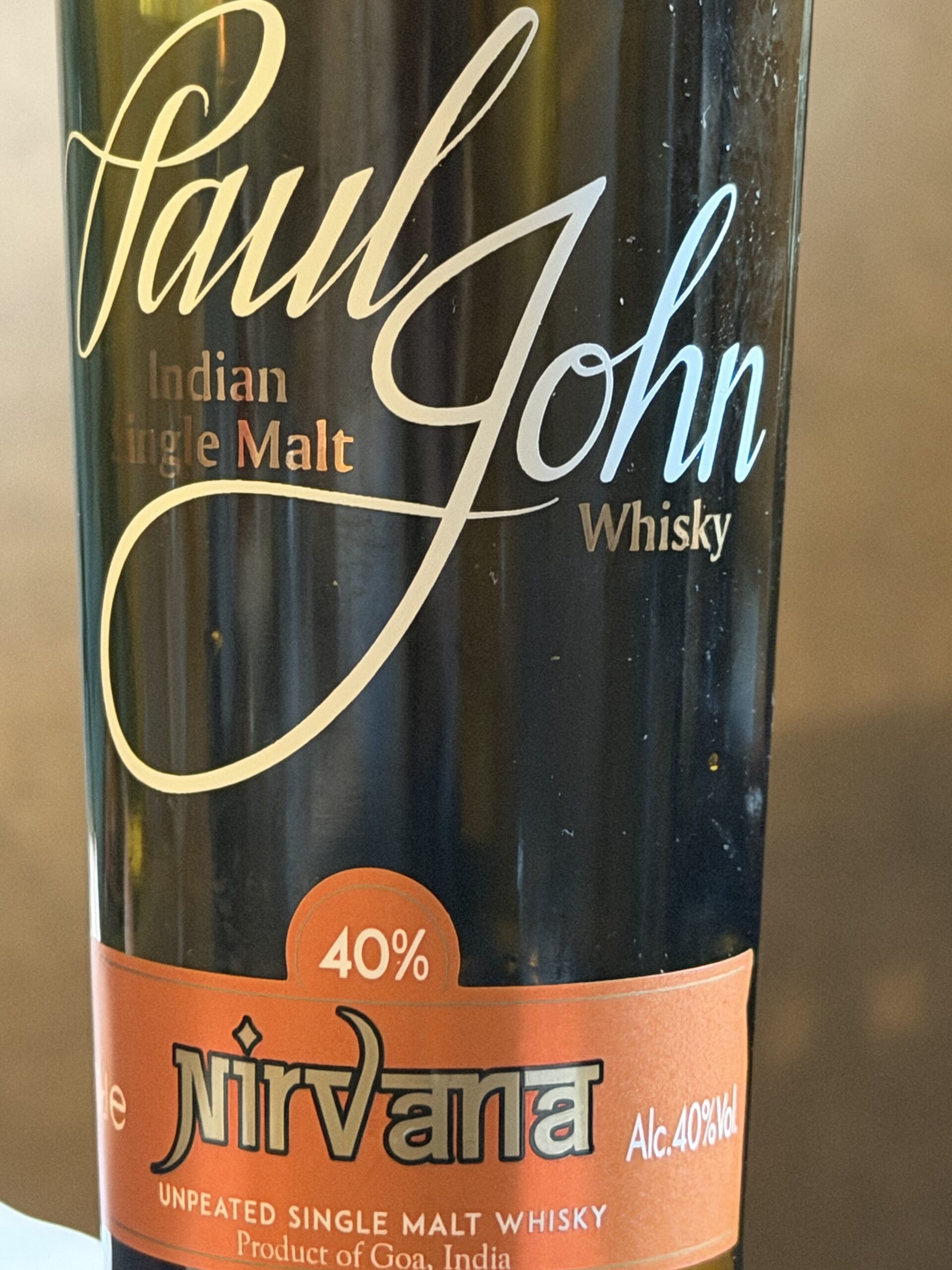 【本日のお供③】Paul John Nirvana (Indian Single Malt Whisky)。暑い土地での熟成により、かなりパンチがあり、料理に合わせるにはソーダ割りがお薦め。