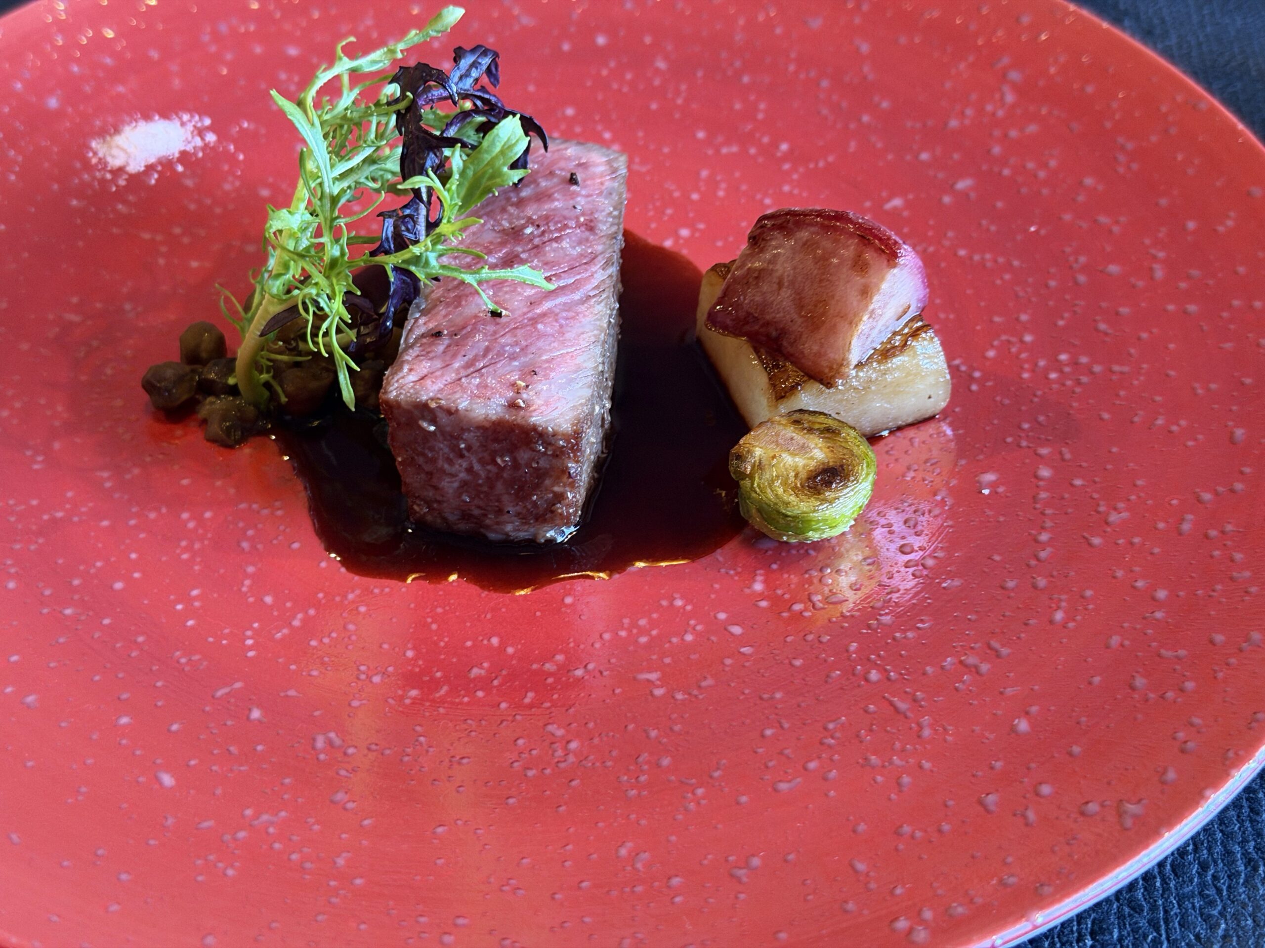 【肉料理】葉山牛のサーロインロースト。カラチャナ、黒ひよこ豆のロースト添え。