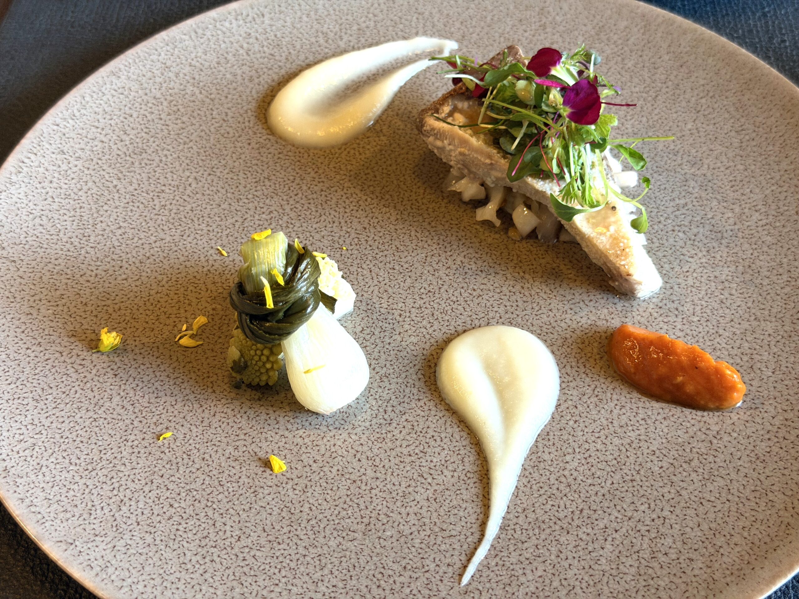 【前菜②】鰤とフェンネルのコンフィ 三浦産冬キャベツとオニオンヌーボー