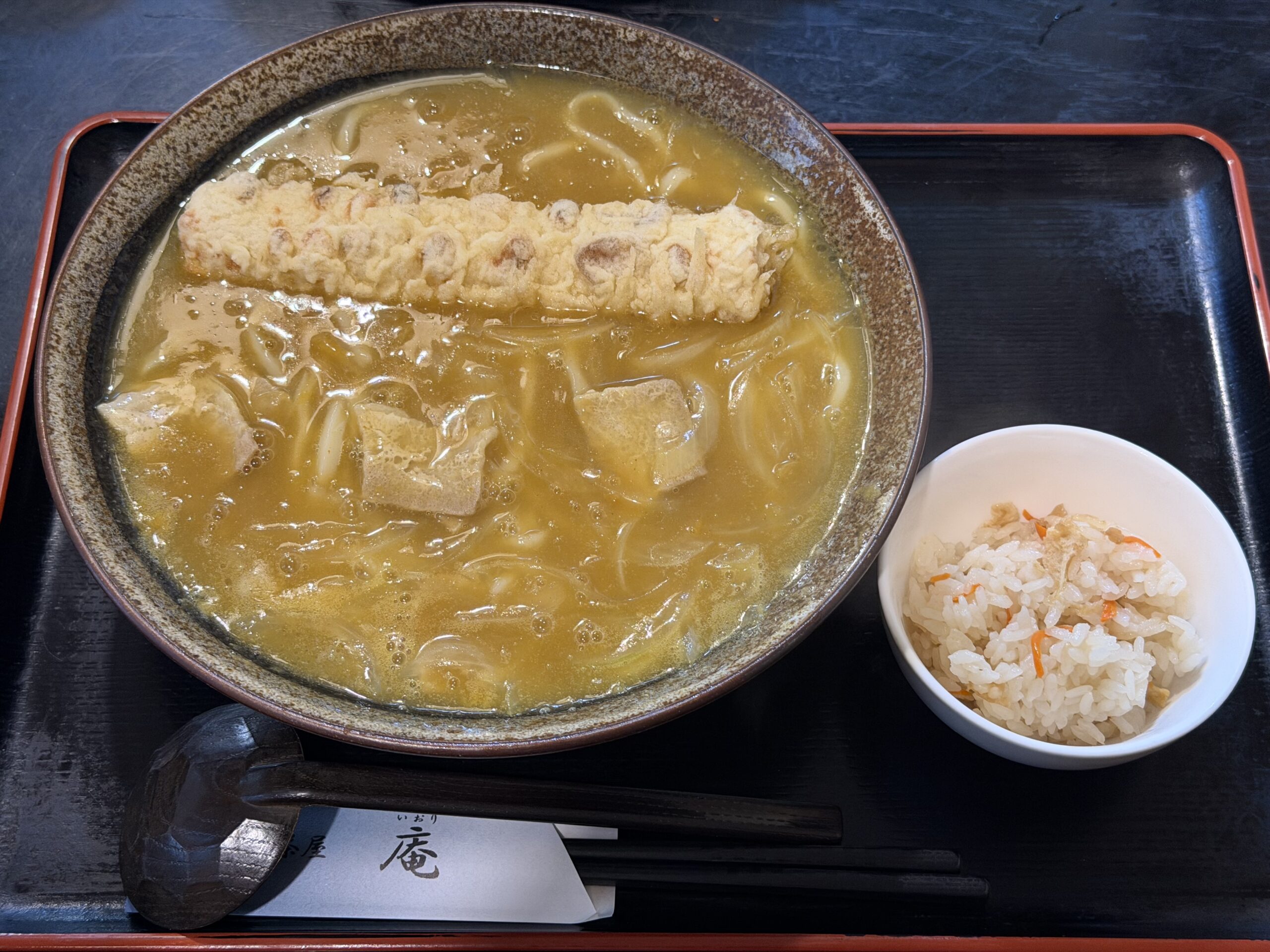【本日のおすすめ②】ちくわ天入り豚肉のカレーうどん。寒い日に体が温まります。