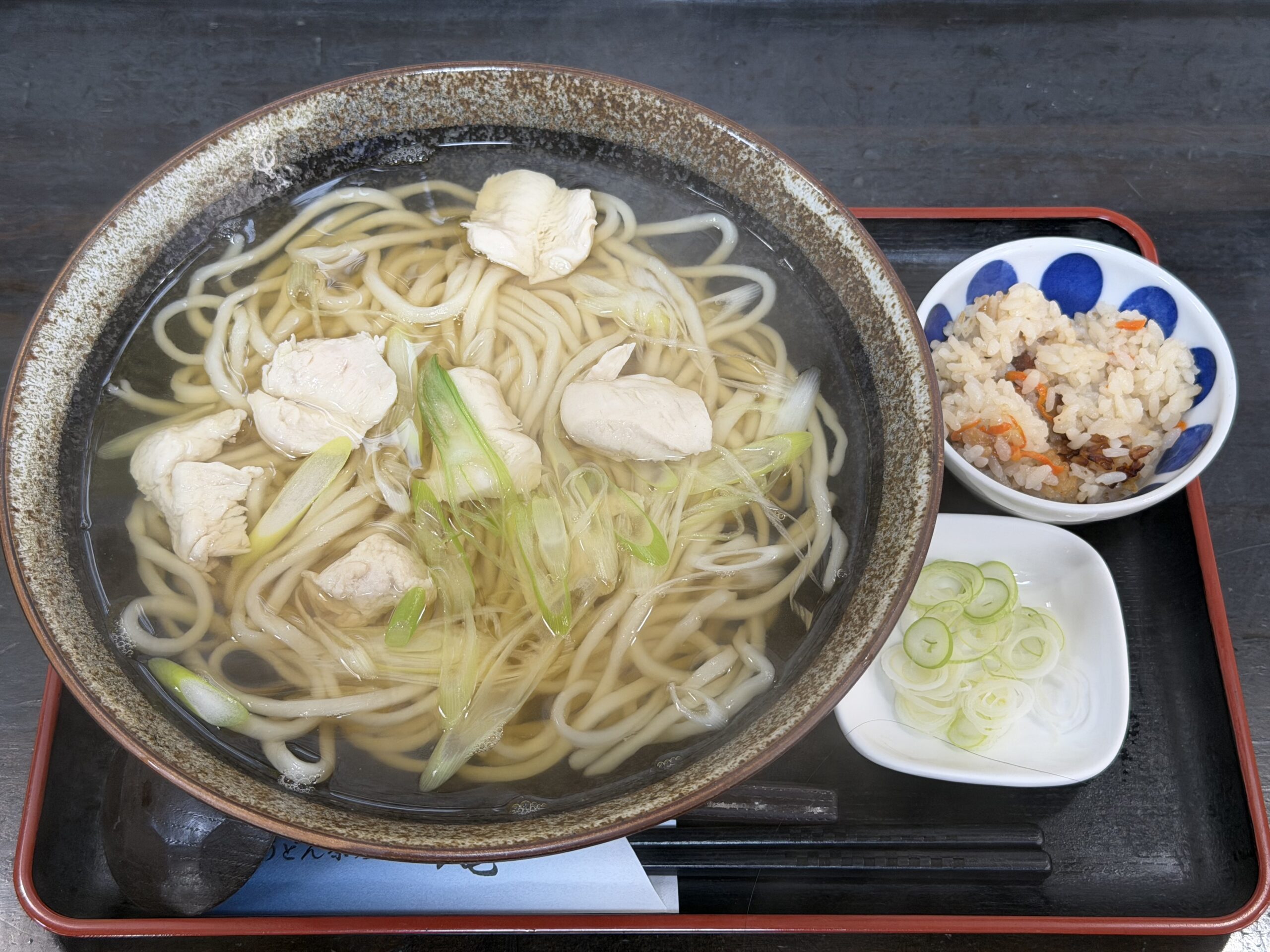 【本日の定番メニュー③】鶏南蛮。透き通ったつゆと細麺との相性が良いです。