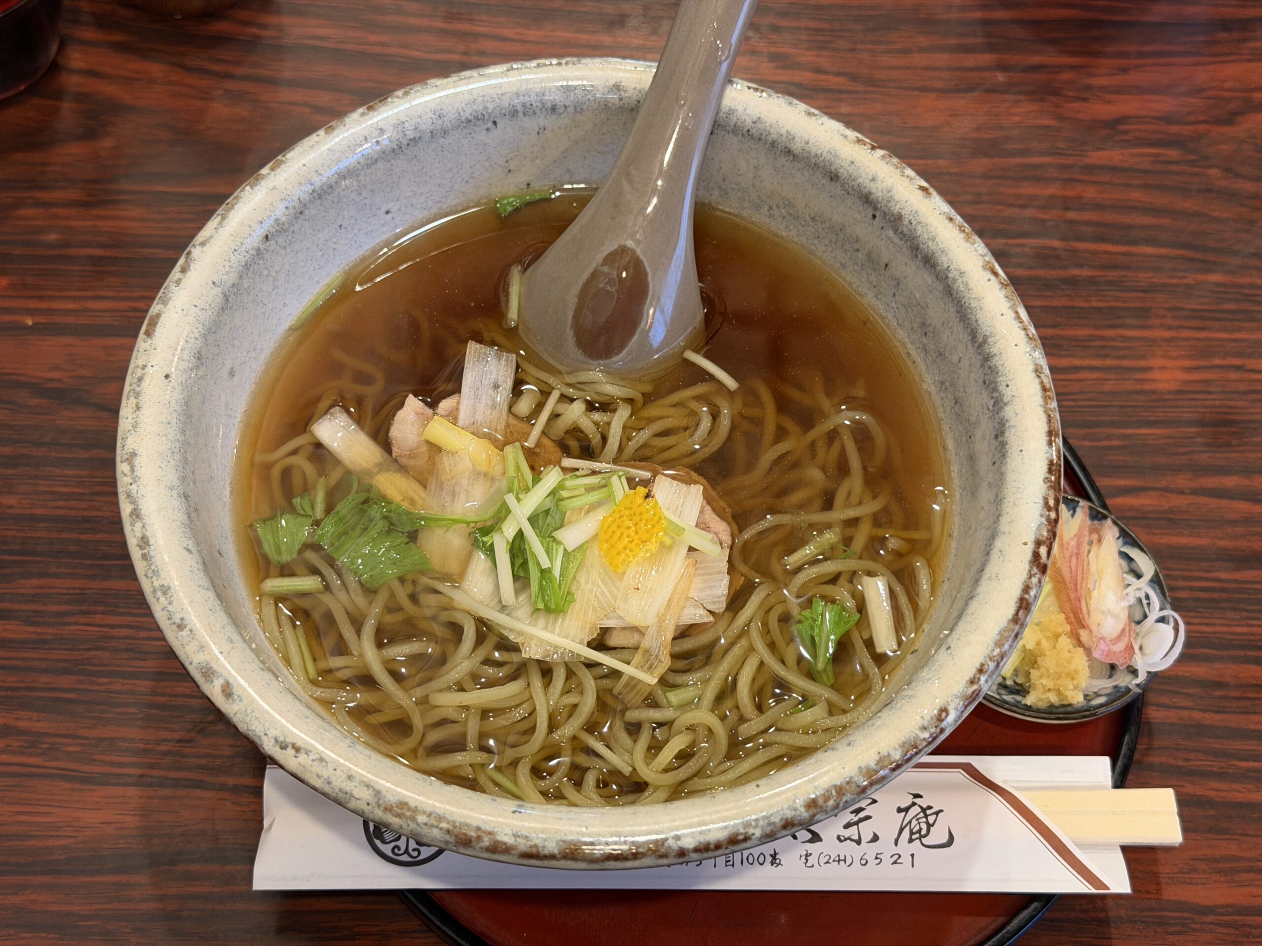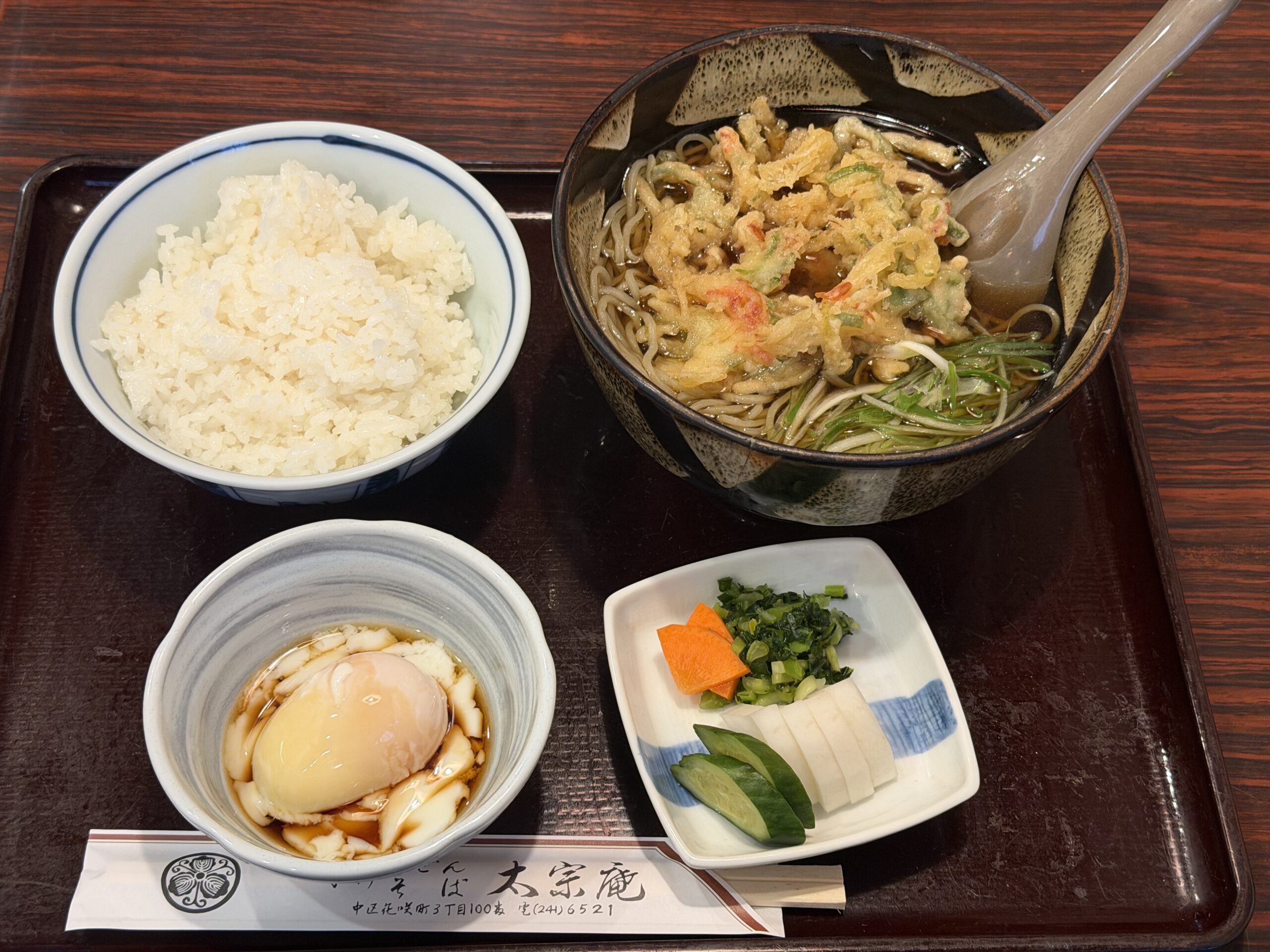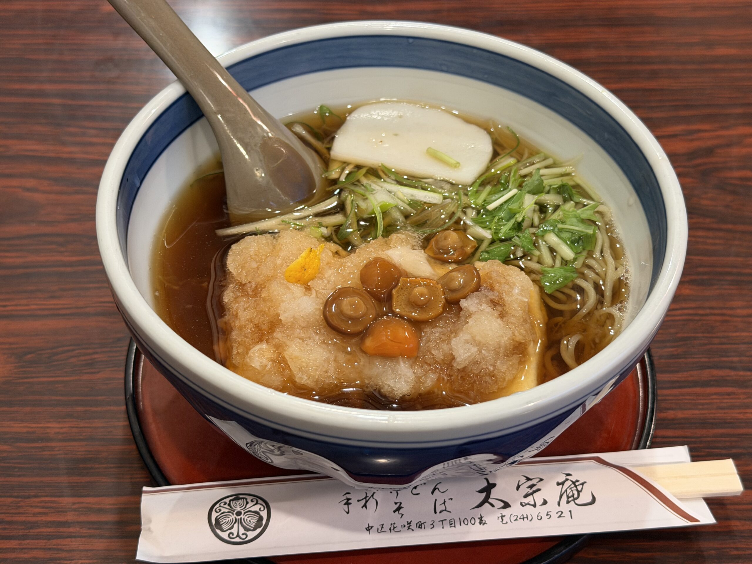 「太宗庵」はJR桜木町駅から徒歩5分に位置し、ご夫婦で営む蕎麦屋。暖簾を潜るとご夫婦のおもてなしが始まります。馴染み客が多い模様で、女将さんとお客様との会話をそばで聞いているだけでも楽しい一時を過ごせます。店構えは3つのテーブルと小上がりとこじんまりしています。そのため、15時過ぎに訪問してもテーブル席は一杯でお断りが続きます。男性は鍋焼きうどんの注文が多く、女性は揚げ豆腐みぞれそばがお好みのようです。たまに閉店直前にお邪魔すると、ご主人とメニューのことや蕎麦屋の最近の動向を聞くことができます。蕎麦屋の新しい楽しみ方を見つけました。